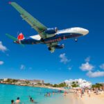The beach, located on the island of Saint Martin, is only a few feet from the tiny runway of Princess Juliana International Airport – meaning planes land unusually close to beachgoers’ heads.